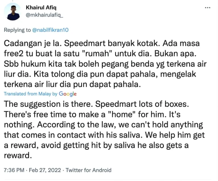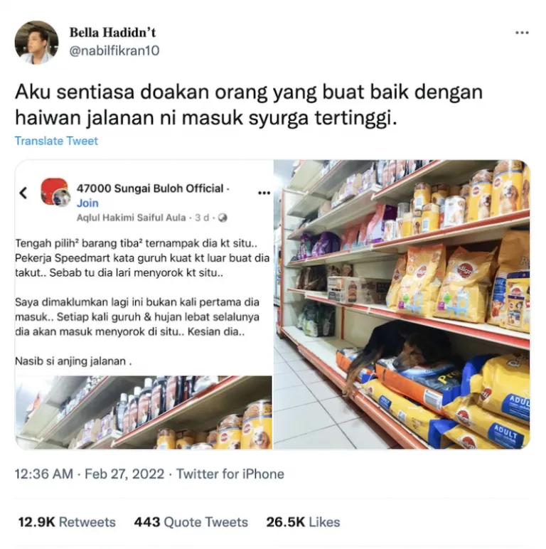 It was posted by Twitter user nabilfikran10 who wrote, “I always pray for those who do good to these stray animals to enter the highest heaven.” As of writing, the tweet has gained almost 13,000 retweets and around 26,500 likes.
