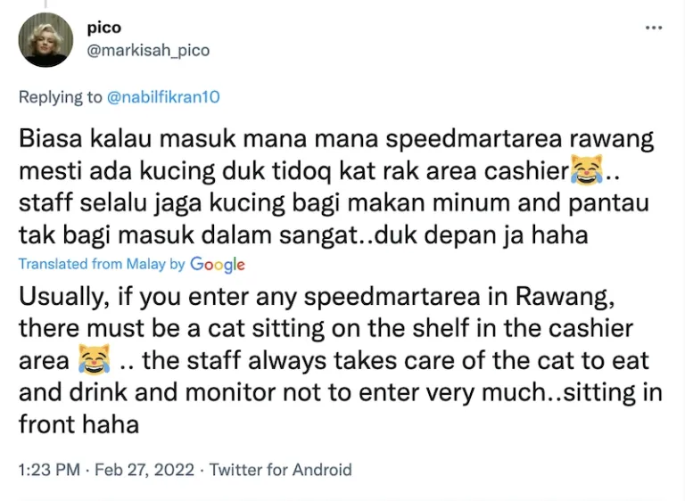 A lot of people on social media were very touched by the staff’s act of kindness. Based on the reactions to the Twitter post, it seems that this is not the only 99 Speedmart store in Malaysia that hosts stray animals in need. The branches in Rawang, for instance, give some affection to stray cats too.