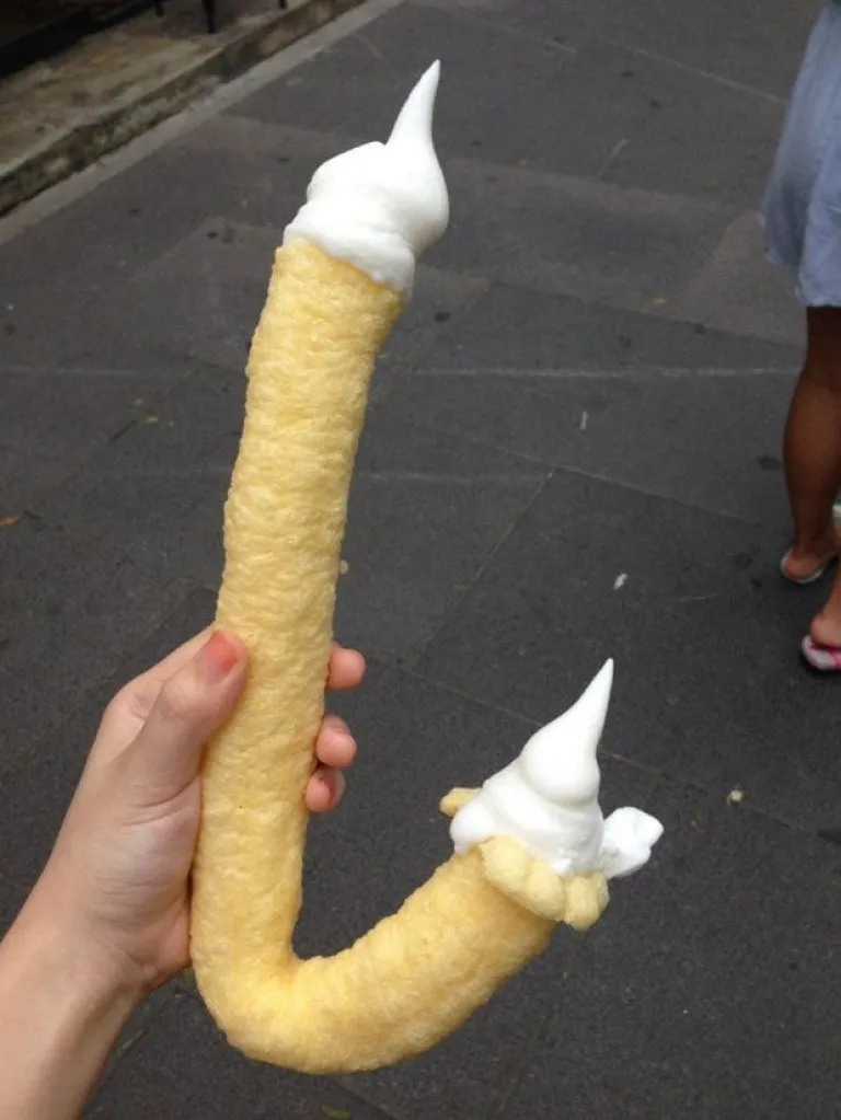 Necessity is the mother of invention. Someone in Korea probably noticed the inevitable stickiness that comes with eating ice-cream in a regular cone, so they came up with a cone made out of corn in the shape of a candy cane. Soft serve ice-cream goes into the hollowed out cone. It’s a huge favourite with families and tourists, mainly because of the convenience and lack of wrappers to throw after. Best thing about it? No more sticky fingers. Walking Cane Ice-Cream can be found in most shopping hotspots in Seoul, including Myeongdong and Insadong.