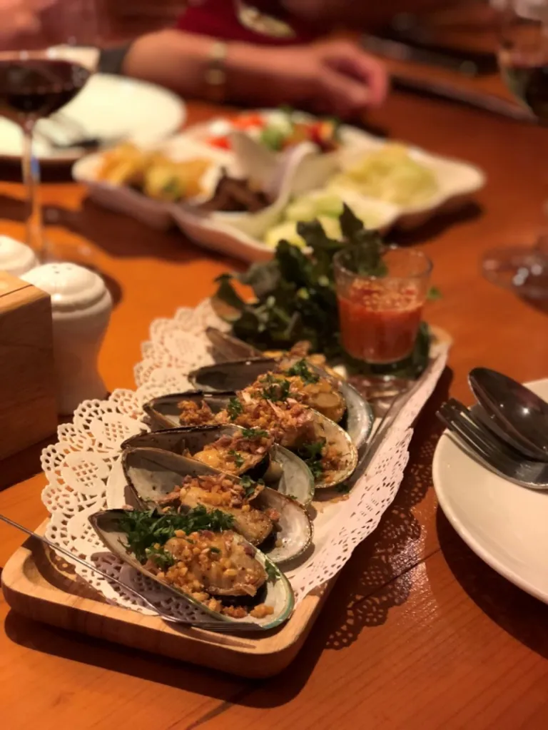 Throughout our trip, we mainly had traditional Thai dishes. Hence, it was nice to have a Western twist to the usual Thai dishes. At , we stuffed our faces with a variety of Thai fusion food. The standout dishes were definitely the Garlic Mussels with Thai Sweet Chilli Sauce and Tom Yam Prawn Pizza. The distinct Thai flavours on a Western medium resulted in an innovative mix of two worlds.