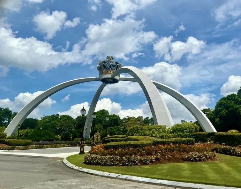 While the palace itself is closed to the public, you can enjoy a royal view of Istana Bukit Serene from across the road at Laman Mahkota, a beautifully landscaped park. From here, the palace stands tall with its signature archway, framed by tropical trees and garden paths. As the sun sets, it casts a regal glow over the building, creating a truly majestic silhouette.