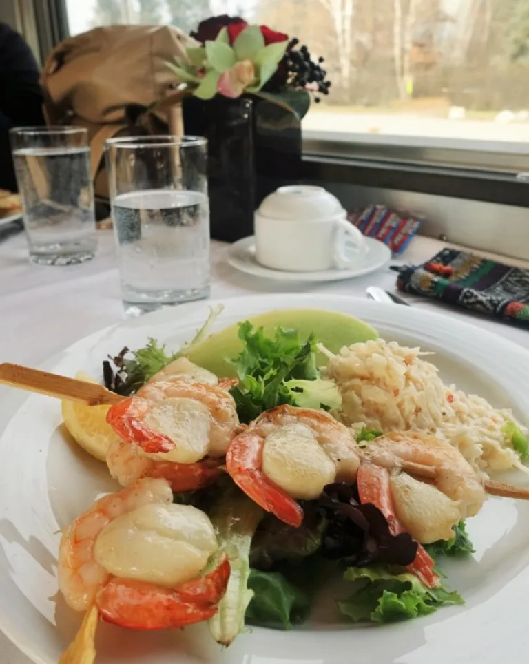 Lovely seafood lunch option on board the VIA Rail. Lunch needs to be reserved beforehand and comes in 2 slots – 11.30am or 1pm.