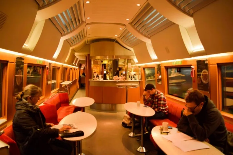 Depending on the train you’re taking, you’ll either be able to find snack and beverage trolleys peddling refreshments (on trains operating shorter routes), or a fully-functioning restaurant serving hot food and drinks!