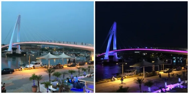 Along Tamsui riverside, you will see ferries taking people to Fisherman’s Wharf 漁人碼頭, do not hesitate to hop on board! Or else you would end up like us, walking for more than an hour to reach the wharf (still a nightmare when I recall the painful 7 7-kilometre walk now). In the picture above, behind us was the famous Lover’s Bridge 情人橋 a.k.a. the colour-changing bridge. As you may or may not tell from the picture, we were really exhausted.