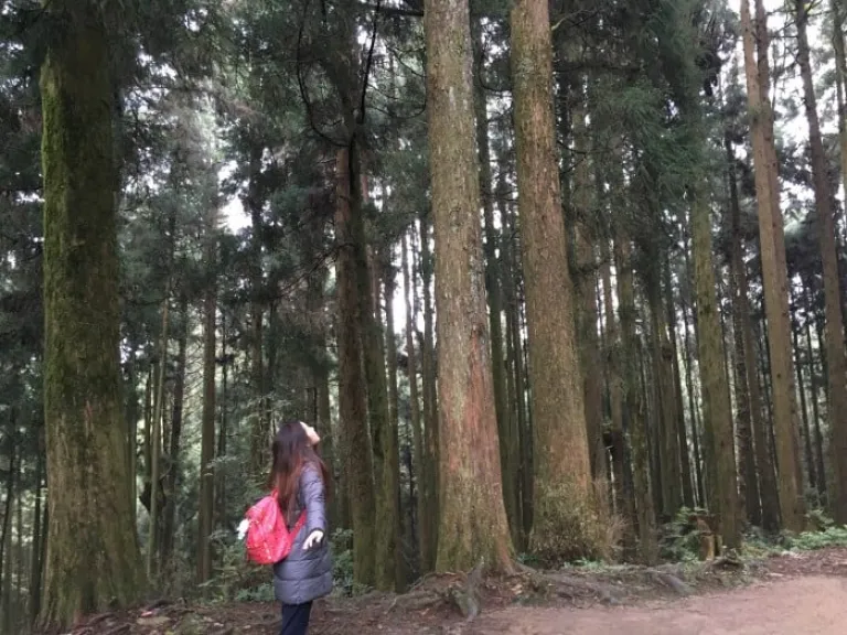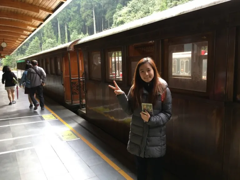 We had fun even without sunrise! Here’s me posing in front of the wooden train of Alishan Mountain Railway 阿里山森林小火車. We later took the train and the scenery along the way was amazing — definitely worth the ticket price!