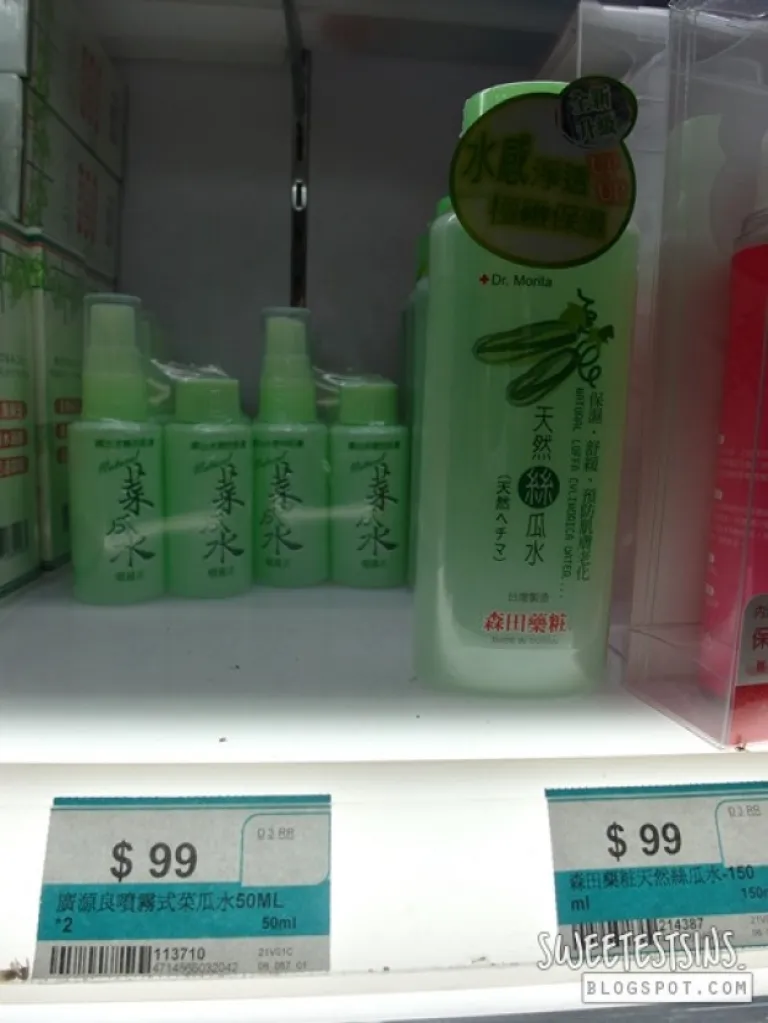 Why am I so excited upon seeing 森田藥粧 天然絲瓜水 Dr Morita Natural Luffa Cylindrica Water? Well, it is because I read from Taiwan Beauty Blogs that 絲瓜水 Luffa Cylindrica Water is good in combating redness on the face and also helps to clean and shrink pore size. Since it’s only NTD99 (~SGD4.20), I grabbed one to try.