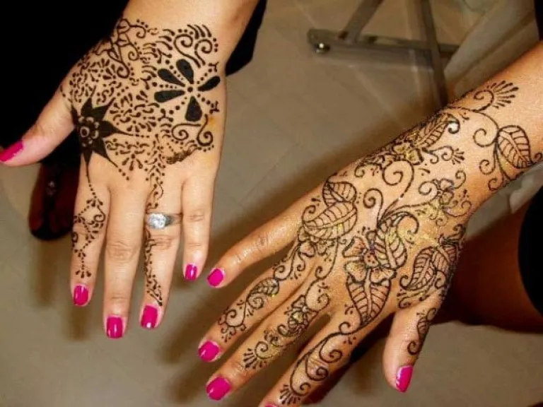 Henna tattoos are non-permanent tattoos that last for a couple of weeks at most. The paste is an organic dye made from the Henna plant that is then squeezed onto the hand and left to dry for an hour. Henna designs are an ancient form of body adornment and hold many special meanings. Presently, the tattooing is commonly found in ceremonial practices such as marriages and births as a form of expression for luck and happiness. The designs consist of various shapes and symbols, though most women prefer the flower designs for a more feminine and delicate look.