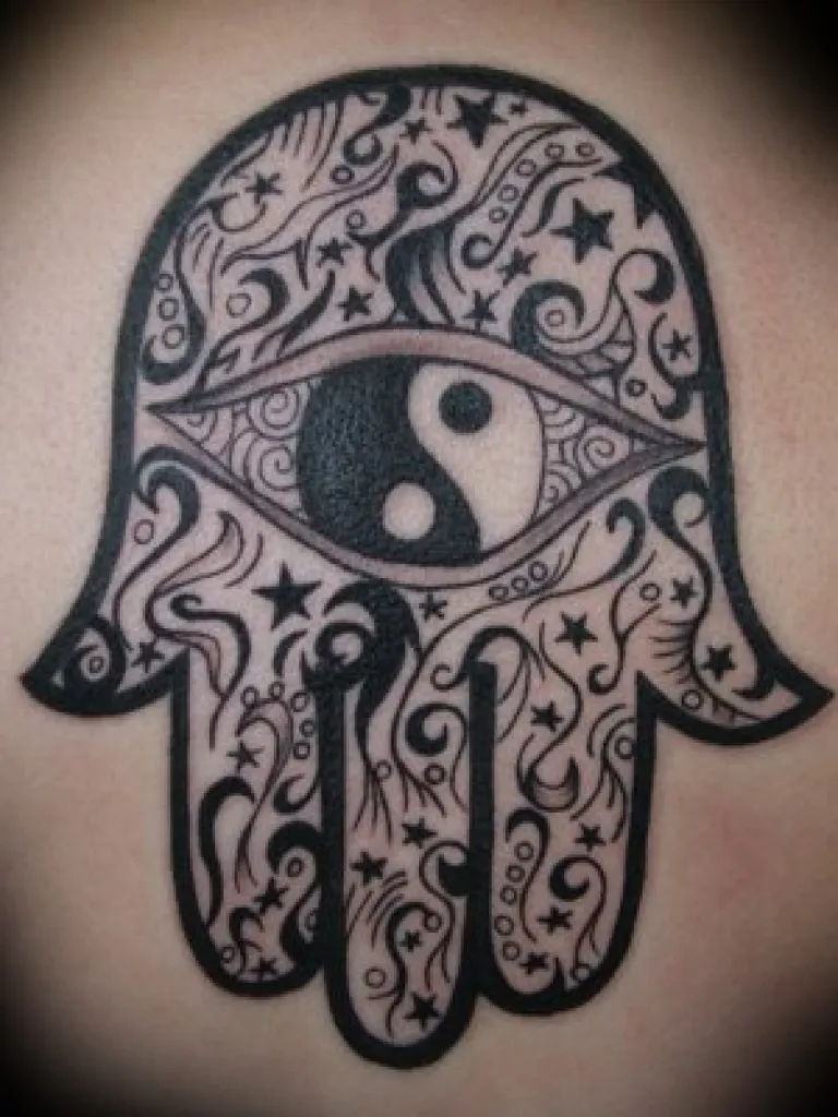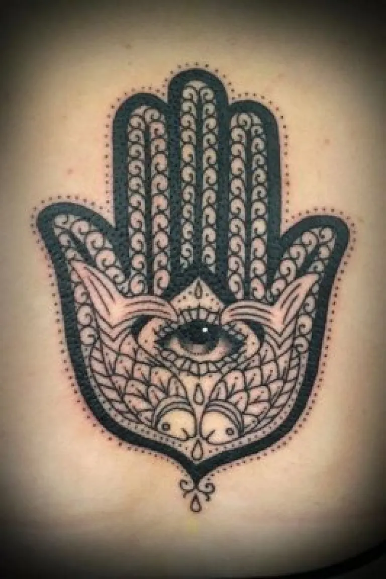 While the eye in the center of the hand is believed to fight bad luck, the upward hand represents protection and blessing, and the downward hand is symbolic of how good things will come, and to warn others to keep away.