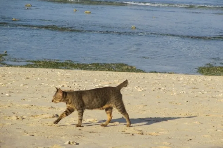 Residents provide food quietly, and the cats come and go on their own terms. They nap on sand, stretch along walls, or follow the cooler air near the shoreline. Visitors will notice how the cats blend naturally into the island’s slow rhythm.
