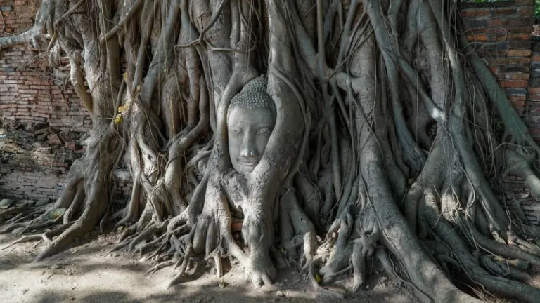 Buddha’s head in a tree, one of the main highlights of Wat Maha That