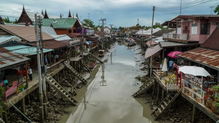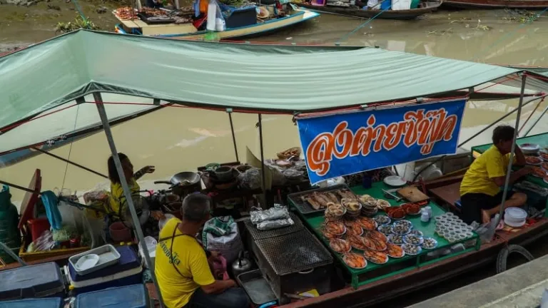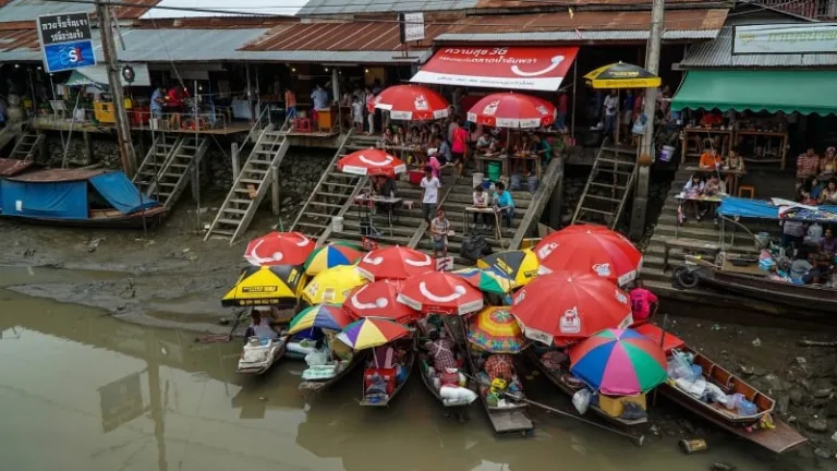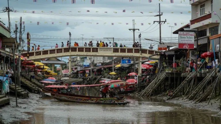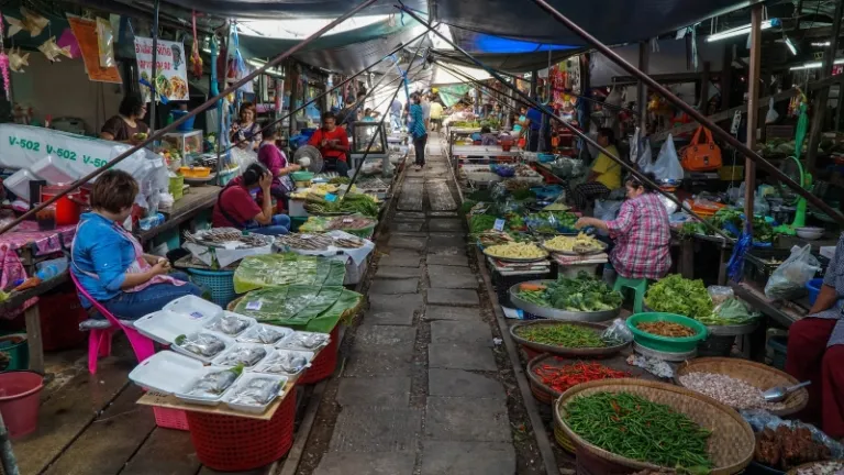 Day 5 – Bangkok to Samut Songkhram & back. Day trip to Samut Songkhram, with visits to Maeklong railway market and Amphawa floating market. Overnight in Bangkok.