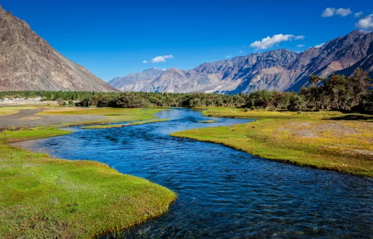 Nubra Valley is a remote and beautiful valley located in the northernmost part of India. The valley is known for its rugged mountains, sand dunes, and unique culture. Visitors can explore the valley on camelback, visit the Diskit Monastery, or take a dip in the hot springs at Panamik.