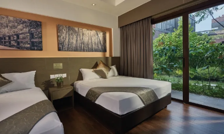 Nestled in the eastern part of Singapore, D’resort at Downtown East is a wallet-friendly option that will fit into any shoestring budget. Don’t be fooled by its unassuming exterior; inside, a sleek sanctuary with a myriad of exhilarating attractions awaits you. Think the likes of a water theme park, a movie theatre, and an indoor skating rink — all a hop, skip, and a jump away. Plus, the resort lies within sniffing distance of the reposeful Pasir Ris Beach where you’ll be in for non-stop thrills and spills.