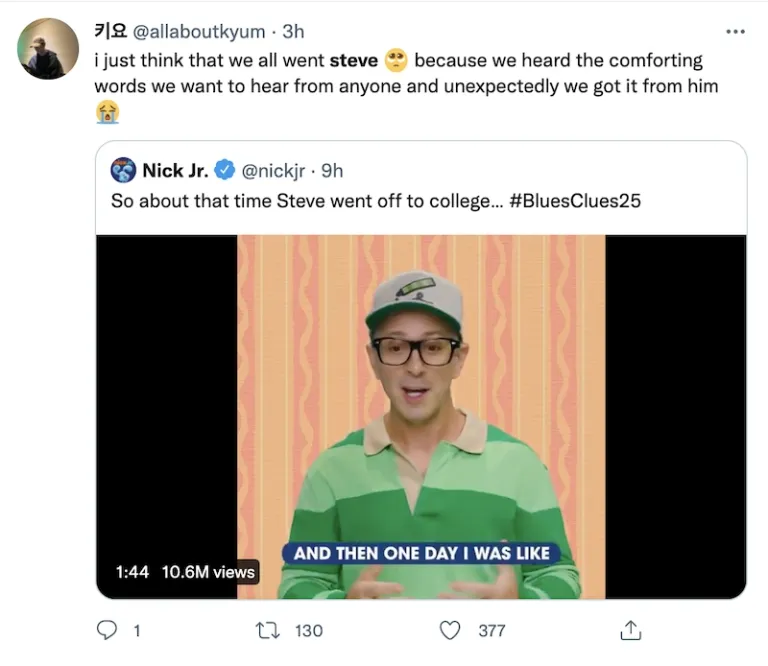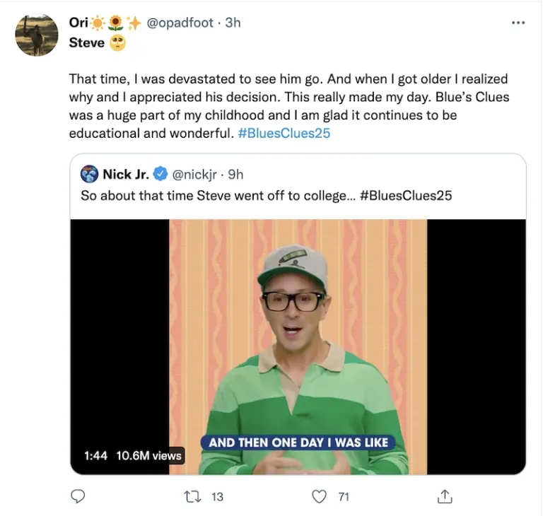 It was a much-needed video as people reminisced how Blue’s Clues was never the same after Steve left