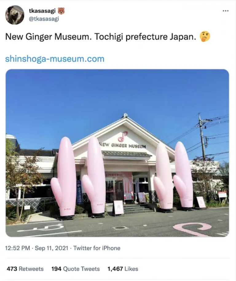 The story goes that the museum owners found a new species of pink ginger in Taiwan and brought it to Japan to make a whole attraction out of it. The New Ginger Museum, aka Shinshoga Museum, is located in the Tochigi prefecture. A Twitter user that goes by the handle tkasasagi recently paid a visit and shared photos of the museum on Twitter, to which Twitterverse had a very amusing response.