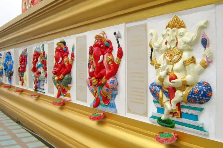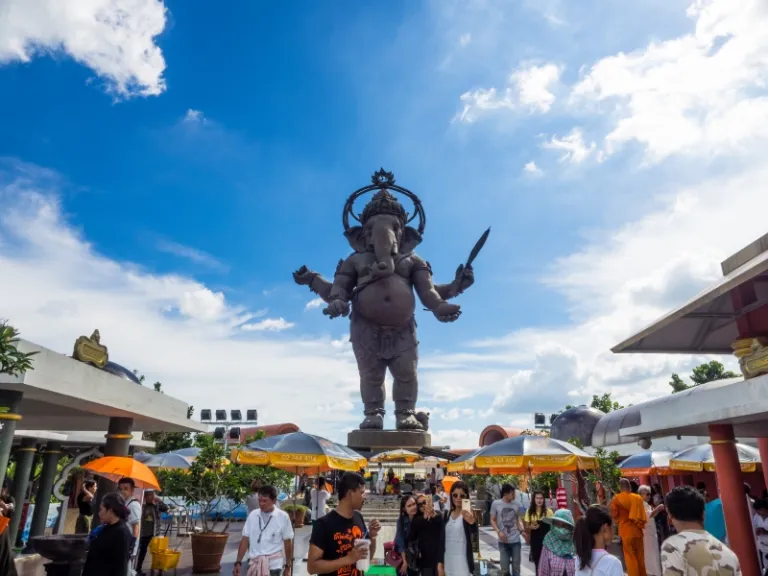 Wat Saman Rattanaram is another of Chachoengsao’s fabulous temples. The grounds are home to a number of large and interesting statues, including the biggest statue of the Hindu deity of Ganesha in the whole country. There’s a three-headed Erawan statue, a stretching multi-coloured Naga, a soaring statue of Kuan Yin, the Goddess of Mercy, and many other statues of characters from Thai, Chinese, Buddhist, and Hindu beliefs.