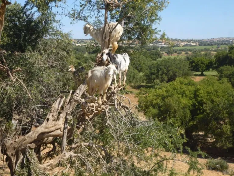 A really unusual and unique sight, if you venture into the argan-growing area you may chance across goats climbing trees to feast on the fruit. The vast majority of farmers now protect the trees from the nibbling goats, only allowing them to climb and dine if it serves a beneficial purpose to them. Often, this purpose is to dazzle tourists. Sadly, this means that goats are often hauled into trees in the hot sunshine to stand on small platforms while people snap photos. If you’re on a trip, you will likely stop at such a spot. If you explore the area independently, you may see goats naturally climbing up through the trees.