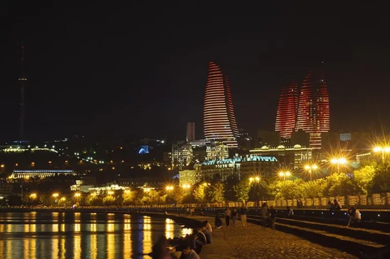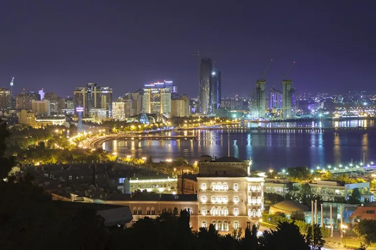 1. Soak in the shimmering skyline of downtown Baku by night