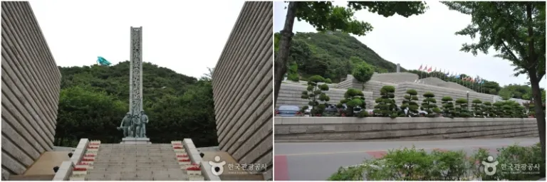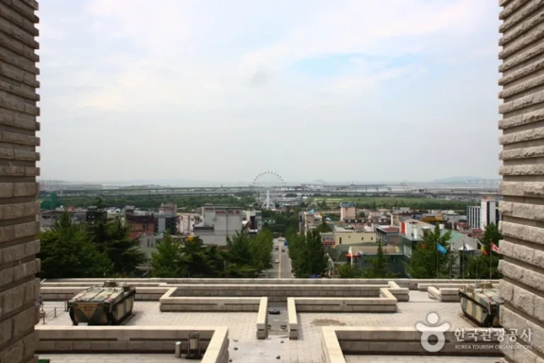 There are two indoor exhibitions which showcase armaments used by North and South Korea, as well a photos depicting both the war and life during the war. The outdoor exhibition features an 18-meter tall memorial tower, military weapons and vehicles, and a display of the national flags of the 16 countries that participated in the Korean War under the United Nations.