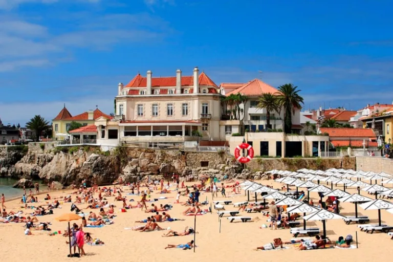 Away from the hustle and bustle of city life, Praia da Conceição is located in the nearby town of Cascais. This beach offers a refreshing escape where you can relax, sunbathe, and swim. Expect a wide expanse of golden sands that gently slope into the azure waters of the Atlantic Ocean. The Sintra Mountains provide a dramatic backdrop to the beach, creating a sense of serenity and tranquillity. Finally, the calm and shallow waters near the shoreline make this beach ideal for swimming — especially for those travelling with kids!