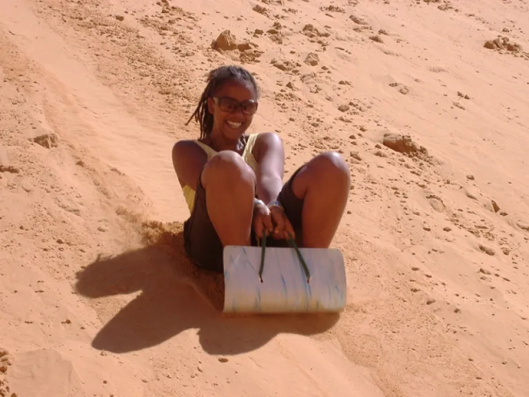 7. Sled down the red sand dunes