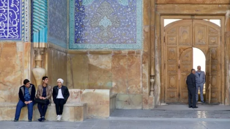 Meeting of sorts in front of the Sheikh Loftollah Mosque.