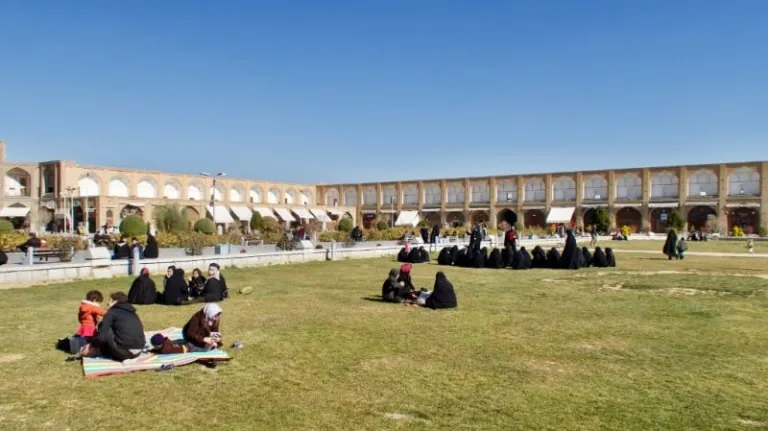 Don’t rush in and out of Naqsh-e-Jahan Square. Instead, slow things down and have a seat on the grassy lawn where you’ll find locals having picnics with their friends or families. You’ll hear the sounds of laughter and children playing, and the clear jingle of the horse-drawn carriages that take tourists around the square.