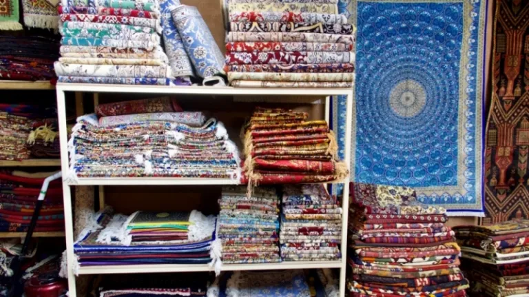 The colours inside a carpet shop in the bazaar.
