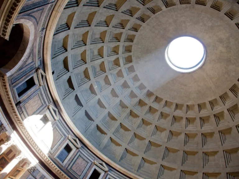 While gazing up at the dome, don’t forget to admire the paintings and statues that surround you in the massive interior. As you come to experience the vastness of the space in the Pantheon, you will understand the initial intentions of the architect to make you feel insignificant, as if you were in the very presence of the gods themselves.