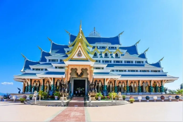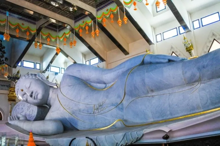 A true sight to behold, this temple lies on top of a mountain, giving visitors amazing views and photo opportunities. It hosts a reclining buddha statue that is made from Italian marble.