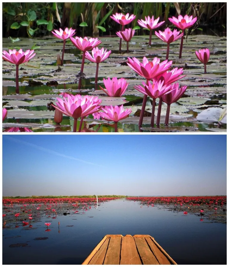 Along the border of Laos and Thailand, lies a lake of water lilies and lotuses, which will leave you absolutely enchanted. Rent a boat to gain the full experience of being engulfed in different hues of pink and red.