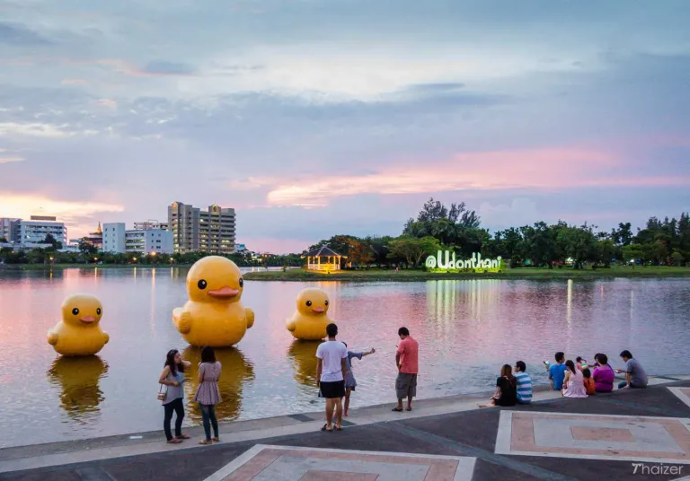 Known as the most popular park within Udon Thani’s city, you’ll be treated to massive ‘rubber’ ducks floating on the lake here. If you’re a fan of night markets, you’d have a ball in the evening when pop up shops open. You can even get a massage while watching the sunset.