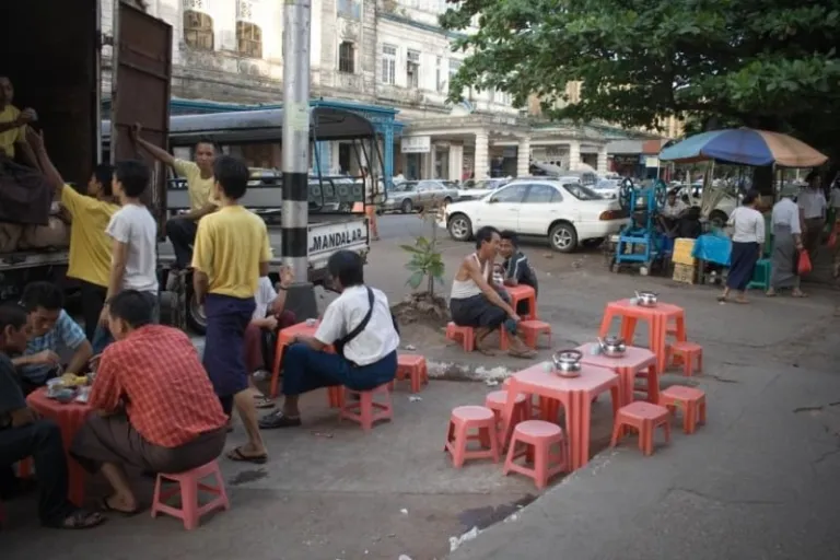 The most common eatery you will find across Yangon is a teashop. You will also be surprised to find all these teashops filled with Burmese men. Believe it or not, but you can get more than 10 varieties of teas (such as Cho Seint, Cho Pawt, Pawt Seint) depending up your preference level of condensed milk and evaporated milk.