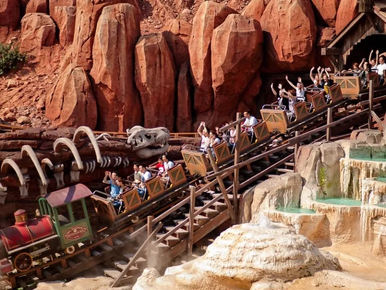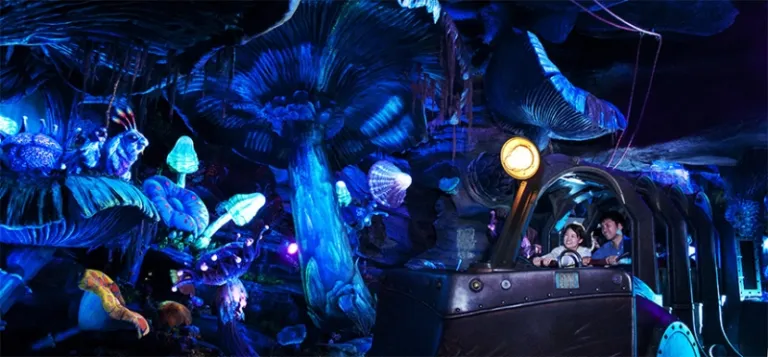 On the other hand, Journey to the Center of the Earth is a thrilling roller coaster ride that lets you visit glowing mushrooms and unearthly creatures before careening into a fast race out of the erupting volcano!