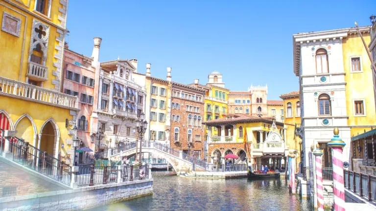 The Mediterranean Harbor is the first area you’ll visit and resembles an Italian port city. It features Venetian gondolas, as well as shops and restaurants.