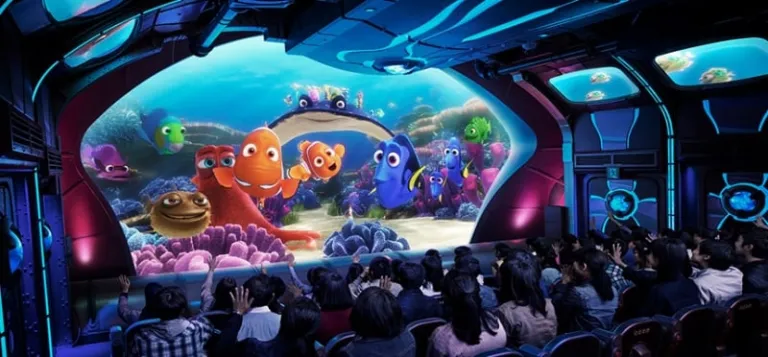 You will board a submarine-like vehicle shaped like a pink sea creature that can shrink to the size of a fish. Explore the underwater world virtually alongside Nemo and his friends — truly an unforgettable journey!