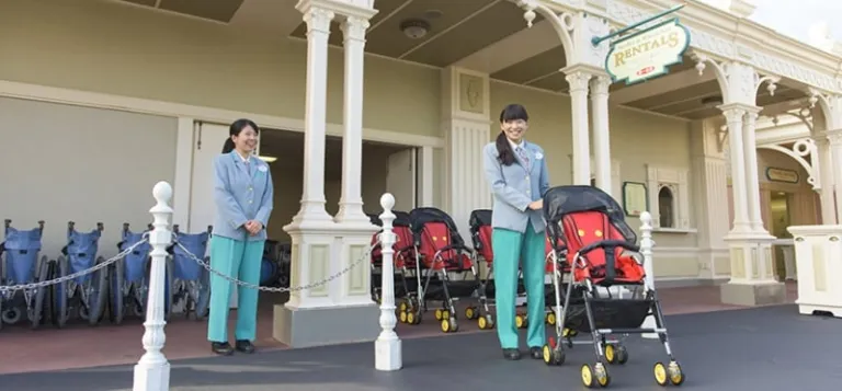 At the entrance of each park, you can rent a wheelchair or a baby stroller if you are bringing small children, elderly, or disabled visitors. Strollers are at a rental fee of ¥1,000 (~S$10.30) while wheelchairs are at a rental fee of ¥500 (~S$5.15). Motorised wheelchairs are also available at a higher fee of ¥2,000 (~S$20.59).