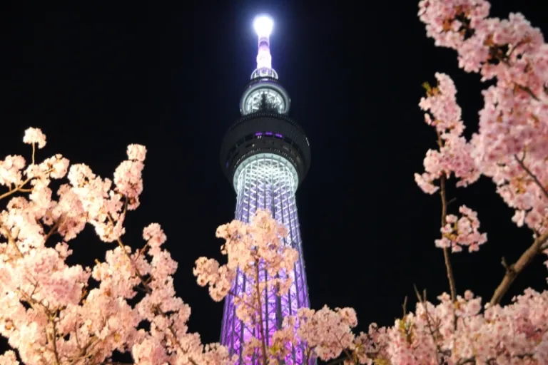 TOKYO SKYTREE is illuminated in a different color each day (“Iki” for the spirit of Edo, “Miyabi” for aesthetics, and “Nobori” for liveliness). This time around, we had the opportunity to witness the limited cherry blossom-themed lighting, “Mai.” Special kinds of lighting may be displayed seasonally, so please check the official website for the lighting schedule.