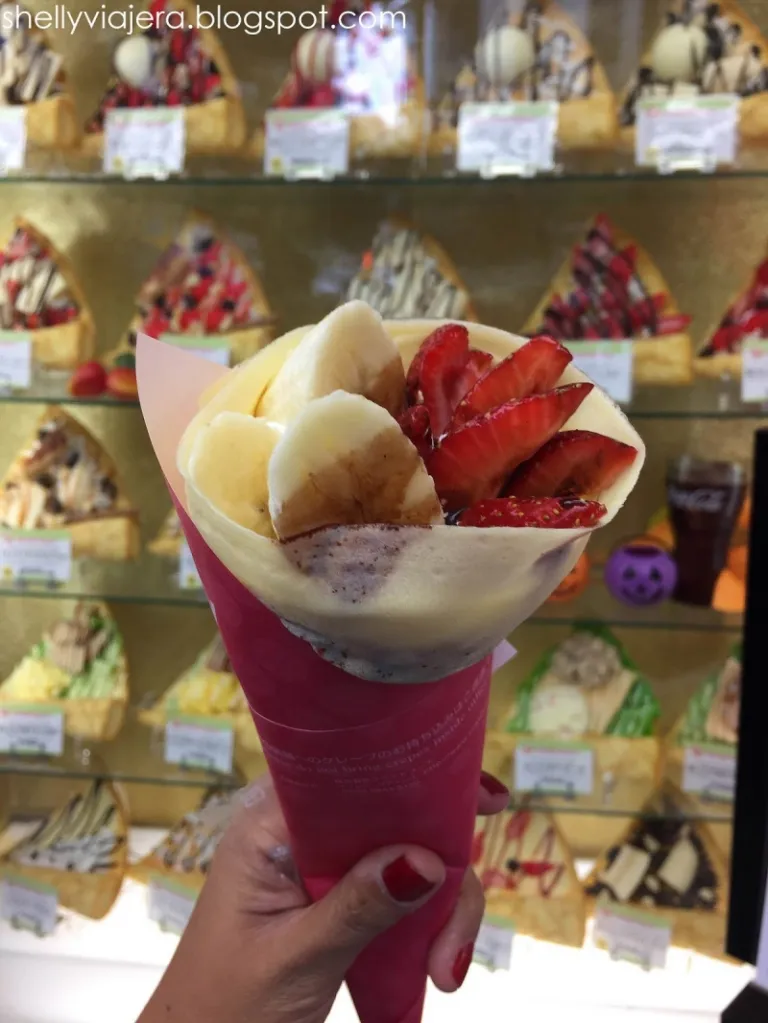 I got crazy over this delicious strawberry-banana crepe with whipped cream and chocolate syrup. It costed me ¥520 (₱242).