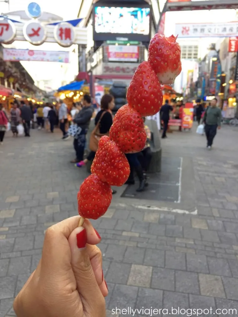 Try the fruits on stick! They are usually sold beside fruit stands at Ameyoko Street. I was able to try fresh strawberry, cantaloupe, and pineapple. All were sweet and juicy!