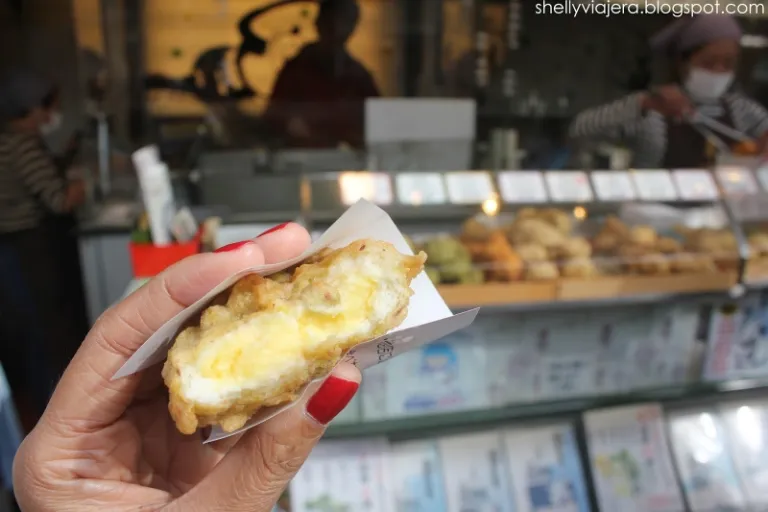 We saw a lot of appetising street food at Nakamise Street. This fried snack with custard filling, for example, tasted so good. I got it for ¥170 (₱79) per piece. Honestly, I don’t know what it is called. We simply decided to buy it after noticing that many people were lining up for this snack.