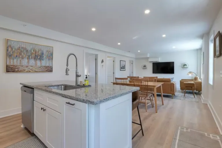 With a prime location on Bar Harbor’s Main Street, this recently renovated Airbnb in Bar Harbor boasts stunning views of Cadillac Mountain and the lively downtown scene. Spread over two floors, the space includes multiple living areas, a full kitchen, and a dedicated work area, making it ideal for families or groups. Located above a popular wood-fired pizza restaurant, guests can enjoy incredible dining just steps away. Though there may be some street and restaurant noise, the vibrant atmosphere and unbeatable location more than make up for it. Dedicated parking for two vehicles ensures stress-free access to Acadia National Park and the surrounding attractions.