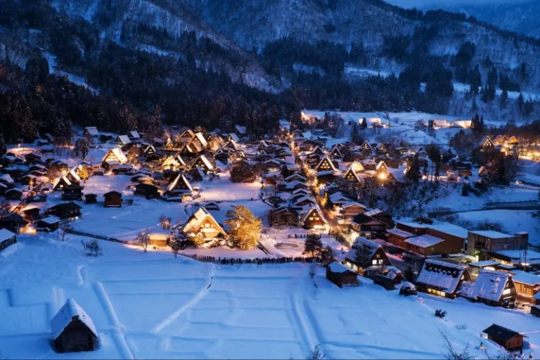 For something super special (and if you’re visiting during winter), don’t forget to take a trip to Shirakawago for a night under the stars. The town looks like a scene from a European painting with its traditionally thatched roof farmhouses and snow-covered landscape.