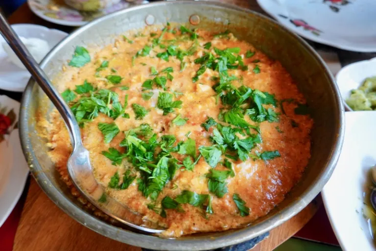 If you’re a big eater, you may also choose to top up your breakfast with a plate of Menemen, a traditional Turkish dish consisting of eggs scrambled with tomatoes, green peppers, spices and/or cheese.