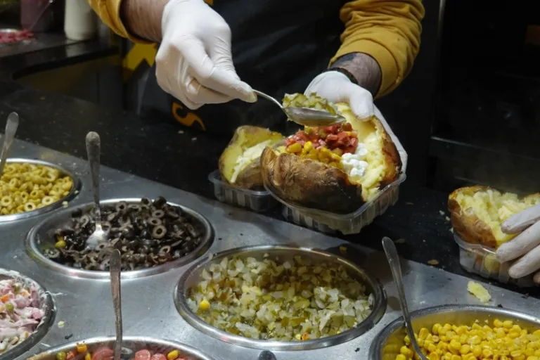 Pop into one of the eateries for a seafood meal; otherwise, head to one of the roadside stalls to try Kumpir. This consists of a baked jacket potato — butter is added to the inside of the potato and whipped till fluffy, with numerous toppings piled on top. An average of six to seven toppings are placed on each potato, with ingredients ranging from ground meat, tomatoes and cheese to olives, corn and sour cream.