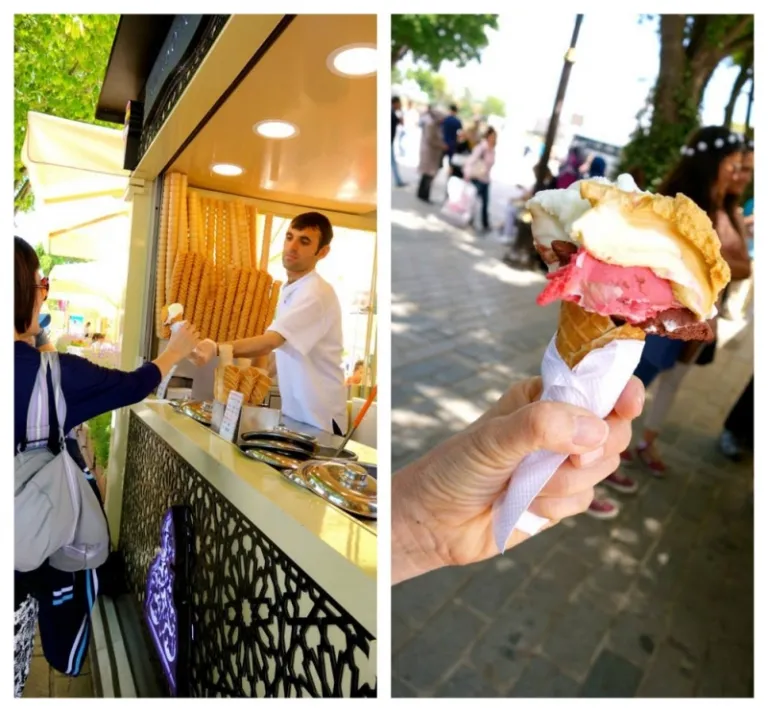 When you need a break, indulge in a cone of Turkish ice cream which, unlike the usual ice cream, is thick and chewy. The ice cream vendors are clad in traditional costumes and often tease their customers. Give this hilarious and unique experience a try!