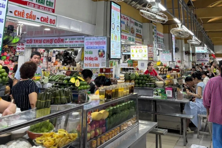 Con Market has a food court section with tightly packed stalls and slim metal benches where you can have a quick bite. These stalls sell everything from Phở bowls to Bánh Xèo and even fruit juice, all at extremely reasonably priced. It’s the perfect place to drop by for your fill of Vietnamese food before heading off for your shopping expedition within Con Market!