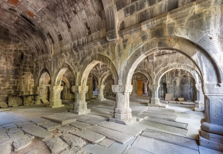 In countries steeped in faith, like Armenia, you’ll be able to see ecclesiastical architecture that dates back to the 10th century. A notable example is the Sanahin Monastery, a structure that artfully combines Byzantine and Caucasus elements of design.