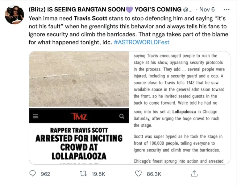 Right now, no one, not even authorities can pinpoint the specific trigger that led to the mob mentality of pushing and shoving from the back of the crowd. But Travis Scott’s concerts are known for their chaotic energy. For instance, in 2015, Scott pleaded guilty to charges of reckless conduct when he told his fans to climb over security barricades to reach the stage. Two years later, he was sued by a Manhattan fan who had become paralysed for being pushed from a third-storey balcony and dragged on stage.