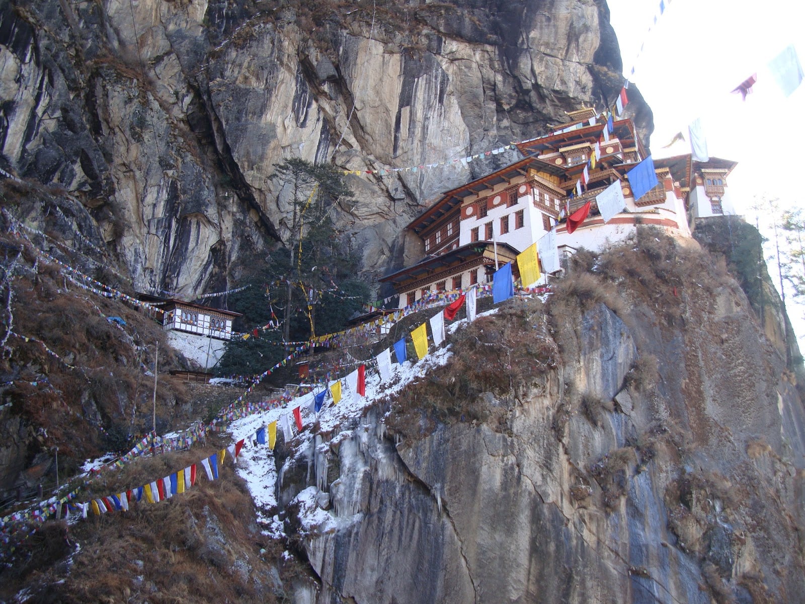 Sitting on the edge of the cliff 900 metres above the bottom of the valley is Taktsang Monastery in Bhutan, also known as Tiger’s Nest.